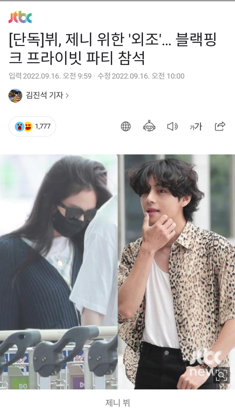 [JTBC 단독 ]뷔, 제니 외조 블랙핑크 프라이빗 파티 참석