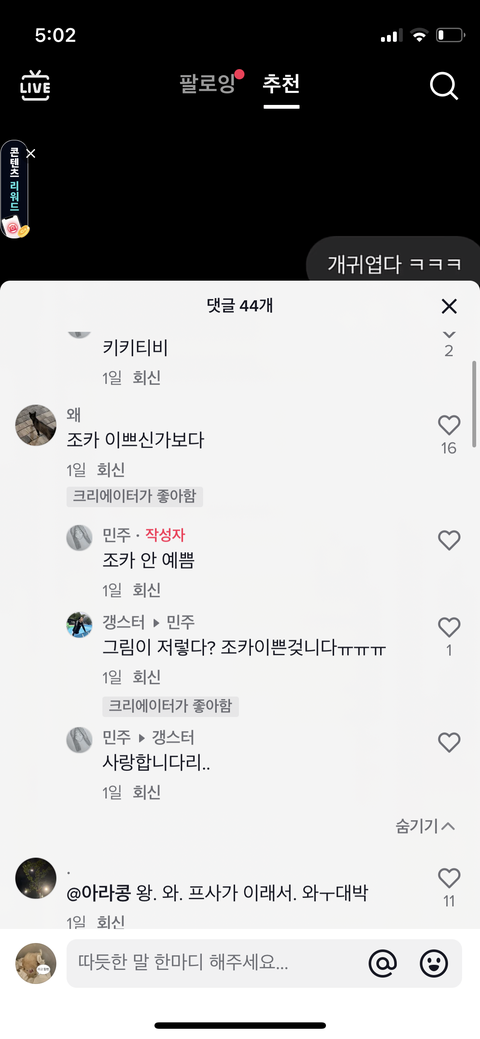 댓글 많은 톡