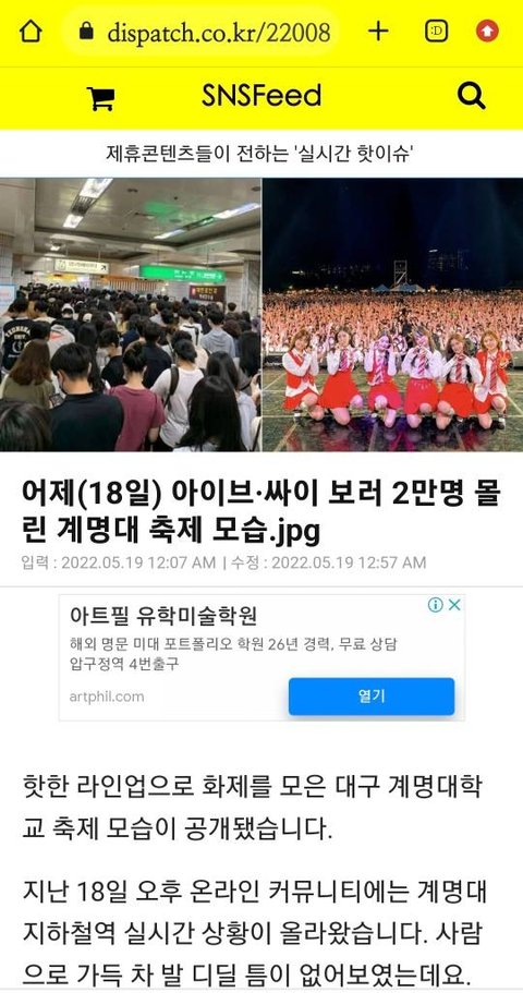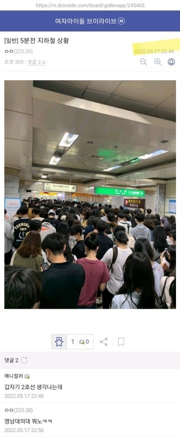 5월 계명대축제때 아이들 온날 아이들 팬갤에 올라온 지하철 상황 사진을 아이브팬들이 염탐하듯이 와서 사진 털어가더니