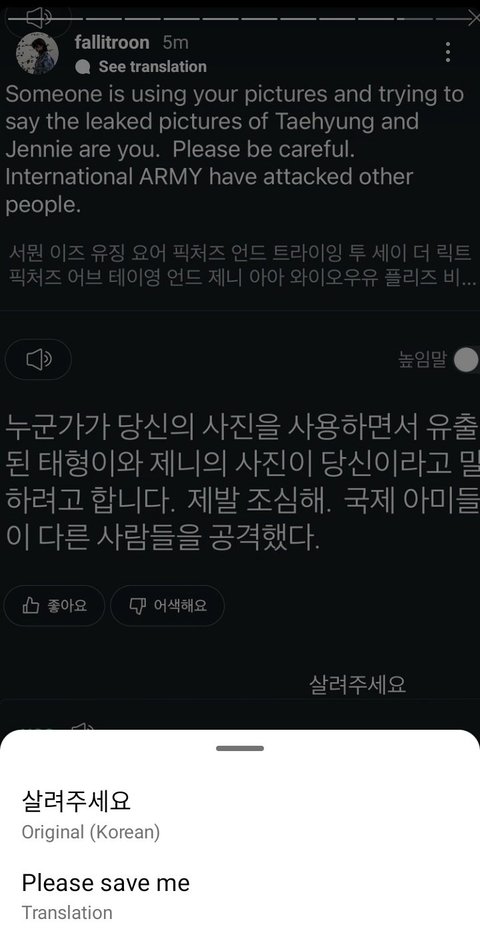 방탄 뷔랑 비슷한 일반인 사진 훔쳐와서 뷔 코스프레계정 만들고 이번 유출 사진도 걔라고 했다가 본인 등판함ㅋㅋㅋㅋㅋㅋ 호모에 미치면답도없다