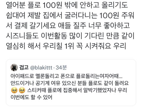 플로는 순위 올리기 제일 쉬운 음원사이트임 거짓말이 아니라 진짜 한시간에 한번씩만 타이틀 틀어주면 순위 쭉쭉 올라가 내가 어케 아냐면 스티커때 직접 경험함 순위 개낮았는데 ㄱㄱ님 부터 시작해서 답자기 플로 독려플 쫙 돌았는데 한번에 1위로 계속 갔었어!!!!!