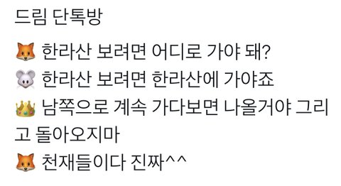 잼: 근데 런쥔아 한라산 정상에서 한라봉 나는 거 알아? 런: 진짜로...?