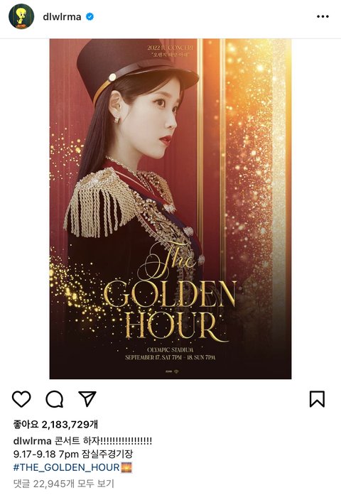 이번에 국내 여자 아이돌, 여가수 최초로 잠실 올림픽 스타디움에서 단독 콘서트 하는 아이유..