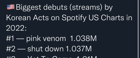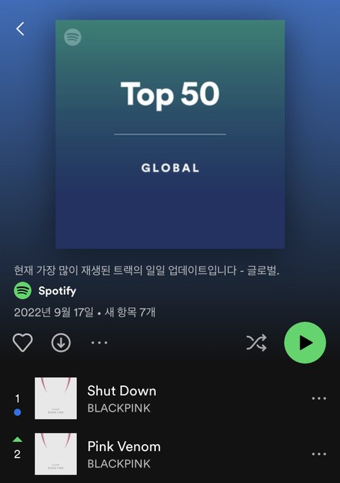 헐 블핑 글로벌 스포티파이 1위 뺐겼네