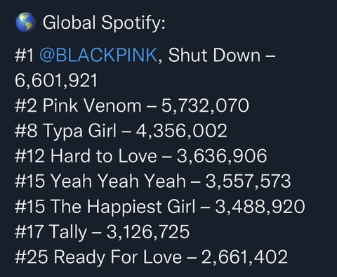 블랙핑크 2집 전곡이 스포티파이 글로벌 30위 안에 진입ㅋ