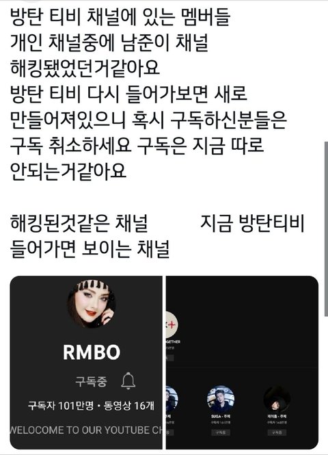 아까 너튜브 구독탭 눌렀다가 내가 모르는 채널의 영상이 우르르 올라온거라 실수로 구독했나싶어서 구취했었는데 짹보니 이런 상황이었네 확인해봐