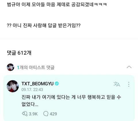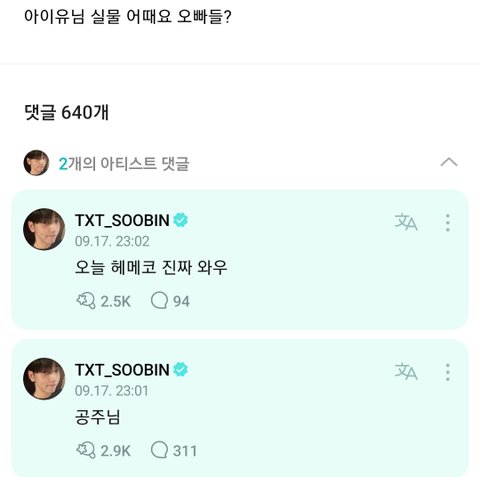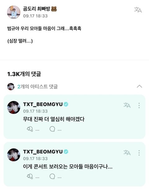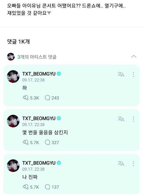 투바투 범규 수빈이랑 같이 아이유 콘서트 갖다왔는데 진심ㅋㅋ