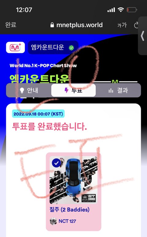 엠카 투표 1위(2위랑 2퍼도 차이안나) 12시지나서 다시해주기