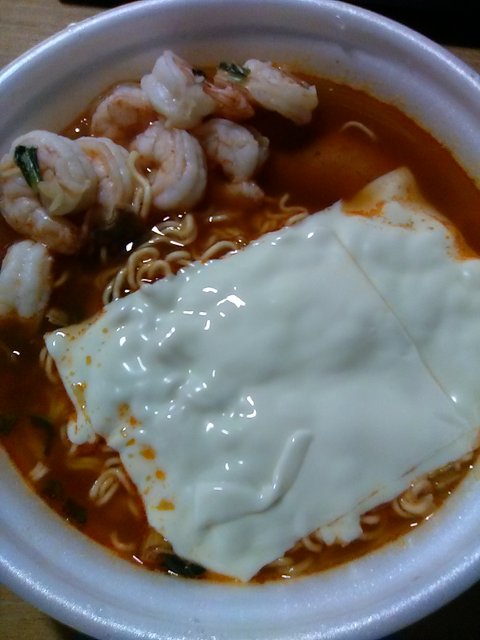 라면에 새우 왕창 넣기