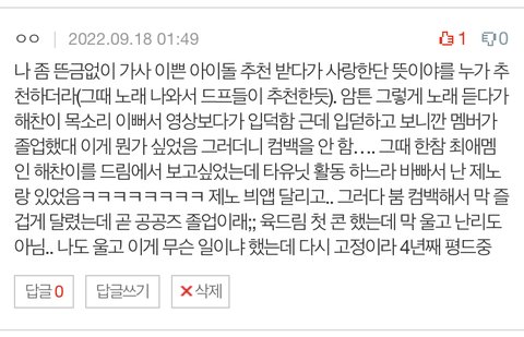 육드림 첫콘에서 멤버들도 울고 지성이도 막 어쩌면 마지막… 그리고 진짜 찐으로 드림이들도 본인들의 미래를 모르는 거임