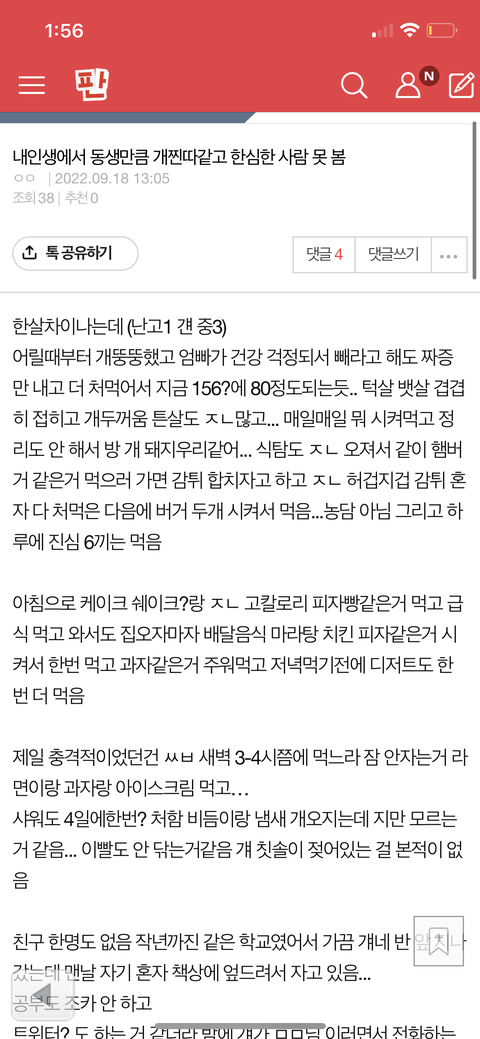 야 이새끼 뭐냐? 내 동생 얘기한 글 퍼가고 살 덧붙여서 ㅈㄹ함