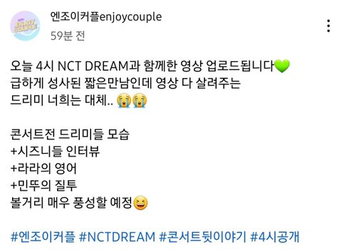 오늘 4시 엔조이커플 유튜브에 더드림쇼 영상