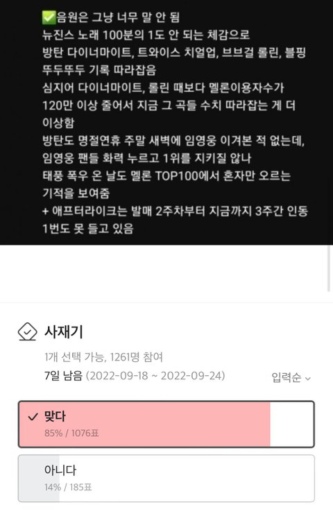 꼭 잘나가는 그룹 있으면 사재기라는 증거도 없으면서 무조건 사재기 타령하더라? 갤련들아 니네가 그렇게 후려치던 일본 팝업 4명밖에 안왔다는 얘기도 구라 들통났잖아 ㅠ 열폭도 적당히 해야지 ㅋㅋㅋㅋㅋ