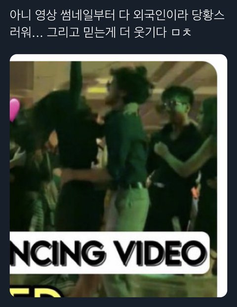 아까 오전에 어그로가 갖고온 그 영상 펙첵도 안하고 다들 분위기에 동화돼서 찐이라고 믿고 달글도 달리고 했었잖아 저거 원본 출처 인도 렉카고 방탄 가지고 온갖 짜깁기랑 루머 올리고 정국이 ㅇㅇㅇ콘서트 간것도 태형이랑 지민이도 같이 갔다고 사진 올리고 윤기는 무대 오르는 것처럼 루머 올리고 그랬던 채널이거든 걍 찐인것처럼 별 어그로 다 끄는 채널임 일단 영상 봐도 그렇고 굳이 영상 안보고 썸네일만 봐도 저기 청음회도 전혀 아니고 같이 춤추는 애들 다 외국인들임