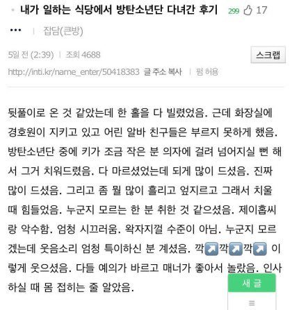 개웃 ㅋㅋㅋ 방탄 목격담
