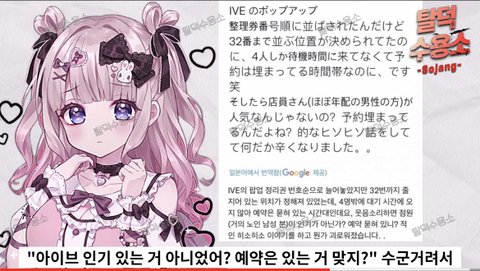 얘네 어떡하냐ㅋㅋㅋ 에스파도 한번찍혀서 탈수님이 영상 몇십개는 더 만든거같은데 이제 아이브 영상만 주구장창 올리시겠네 안됐다