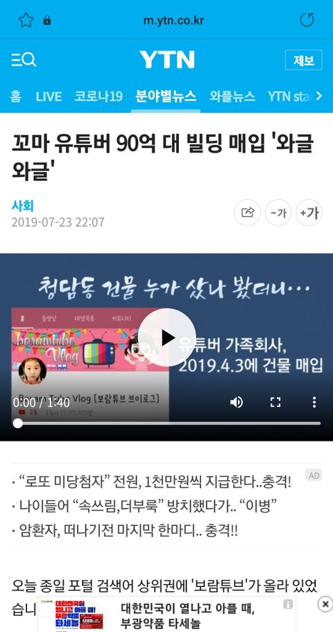 얼마전에 꼬마 유투버 청담동에 95억짜리 빌딩샀대잖아