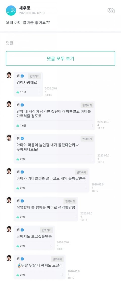 음방 못 온 아미들 위해서 녹화 끝나고 밤에 라이브 켜주고