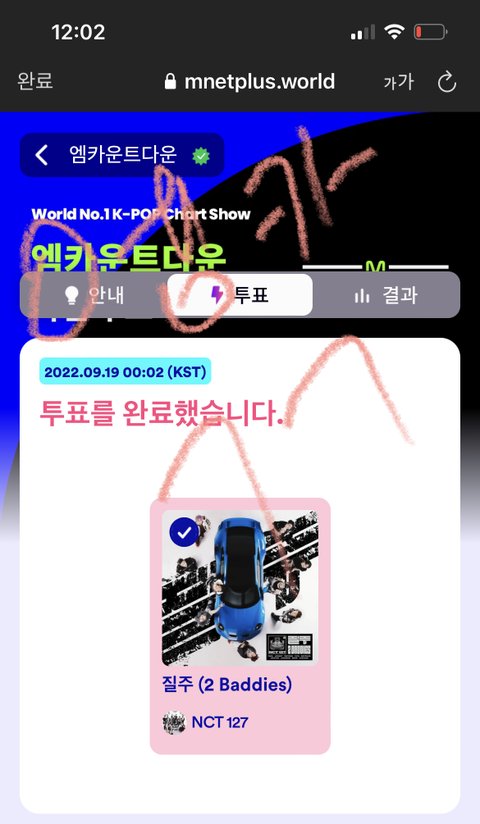 2위랑 2.3퍼밖에 차이안나!! 다들 링크눌러서 엠카투표 ㄱ