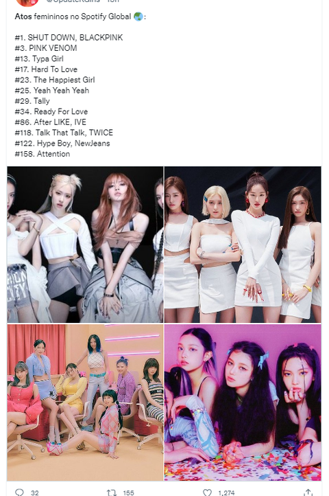현재 Kpop 여그룹 곡 스포티파이 글로벌 순위