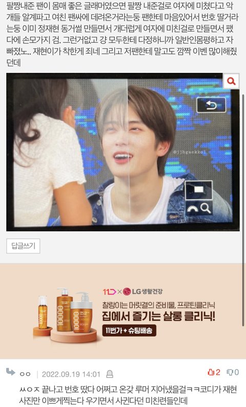 일본인기도 정재현이 탑인데 ㅋㅋ일녀들 유사 개심해서 질투하는거 모르나;; 예쁜팬이면 그냥 무표정하고 있어도 재현상ww 이쁜여자팬 좋아하는 ww 슬퍼 ㅇㅈㄹ하는게 일팬들인데