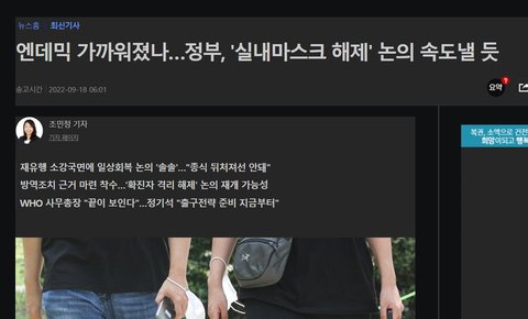 (물론 지금도 야외에선 마스크 안써도 되는데 무슨 이유인지 모르겠으나 다들 쓰고있지만, 실내까지 해제되었는데도 쓰고다니는사람은 없겠지)