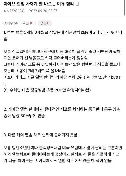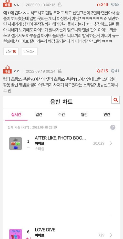 응 일주일 내내 아이브 까글 도배되는거 보면 확실히 아이브가 4세대 걸그룹중에 ㄹㅇ 잘나가는거 맞긴 맞네 ㅋㅋ