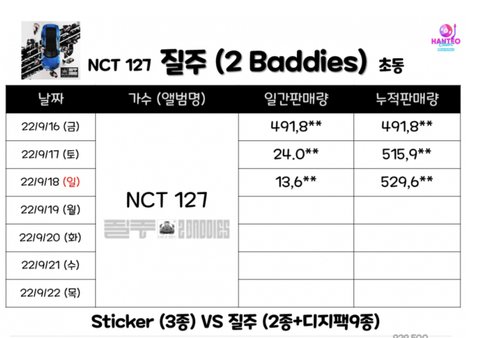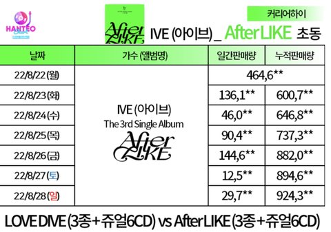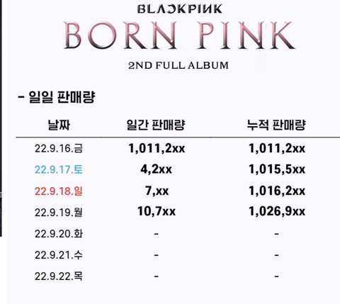 블핑 4일차 102만장 엔시티127 3일차 53만장아이브 초동 90만장 < ??? 엔시티보다 3일차 높게 나옴