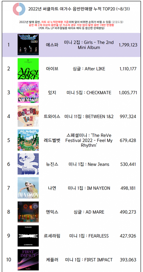 에스파 180만장. 있지 100만장