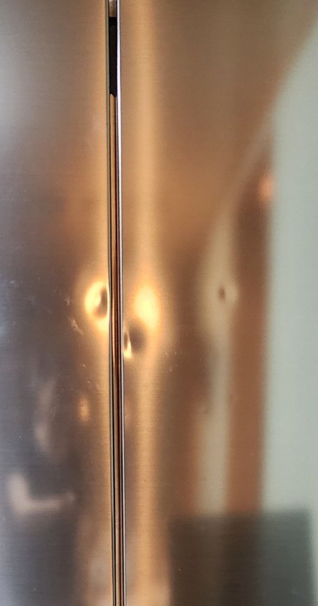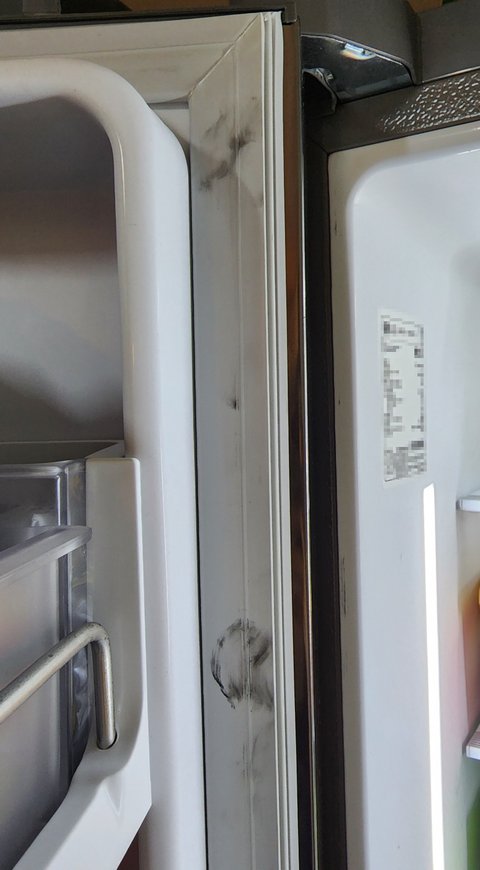 냉장고 도어에 없던 찍힘이 다수 생겼고 (찍힘 중 일부)
