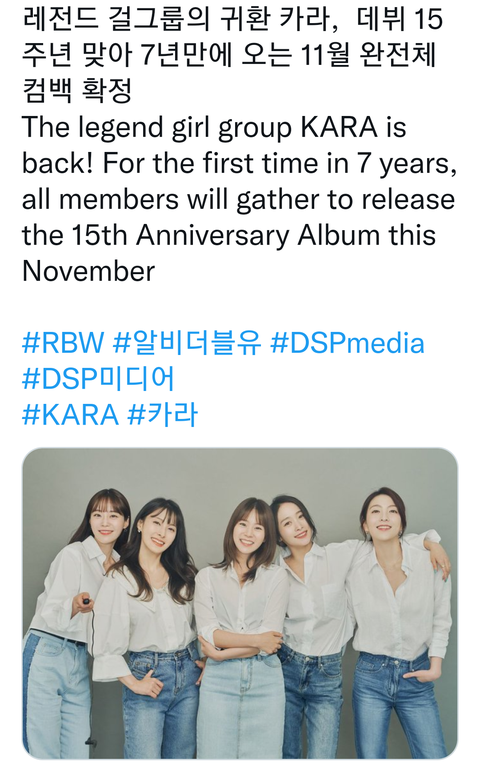 카라 원 소속사 DSP미디어를 인수한 RBW에서 발매