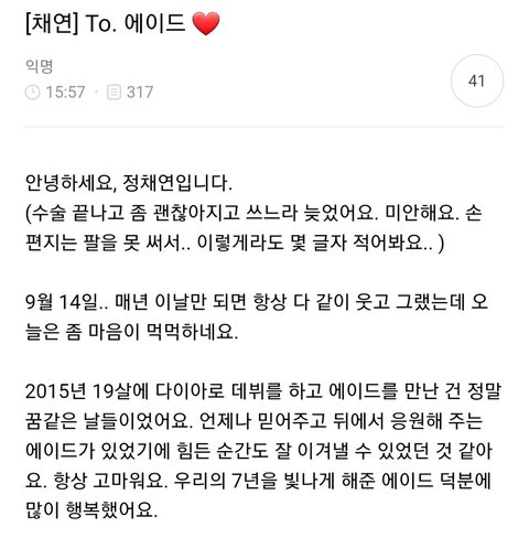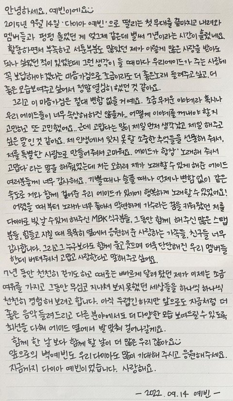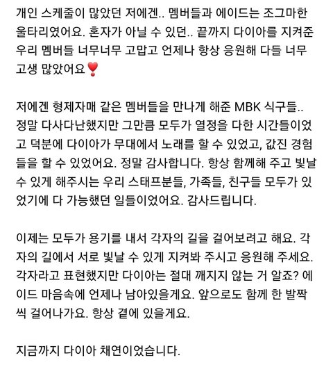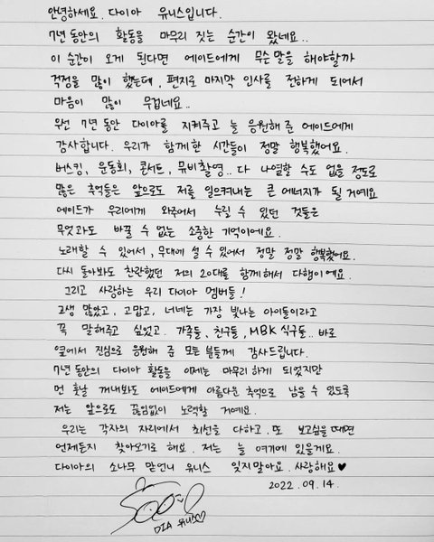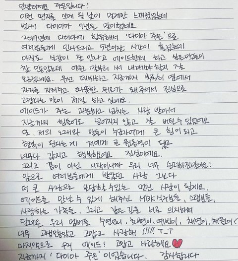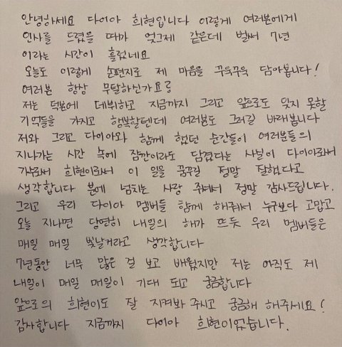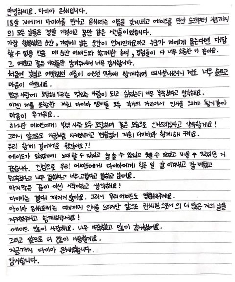 다이아 멤버들의 마지막 인사 편지 써줬었음