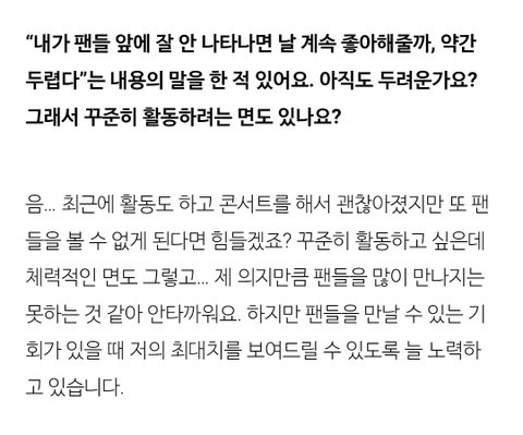 팬들을 만날 수 있는 기회가 있을 때 저의 최대치를 보여드릴 수 있도록 늘 노력하고 있습니다.