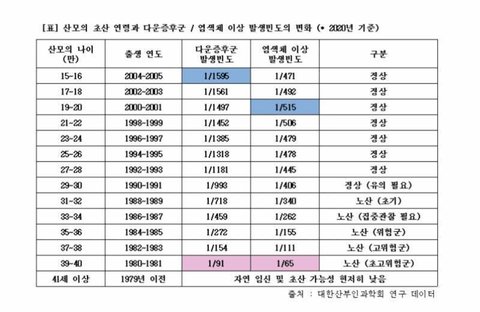 남자들 여자 노산 조심해라 나이대별 장애아 확률이다