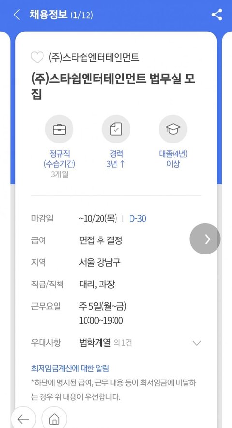 [속보] 스타쉽 법무팀 모집 고소 시작