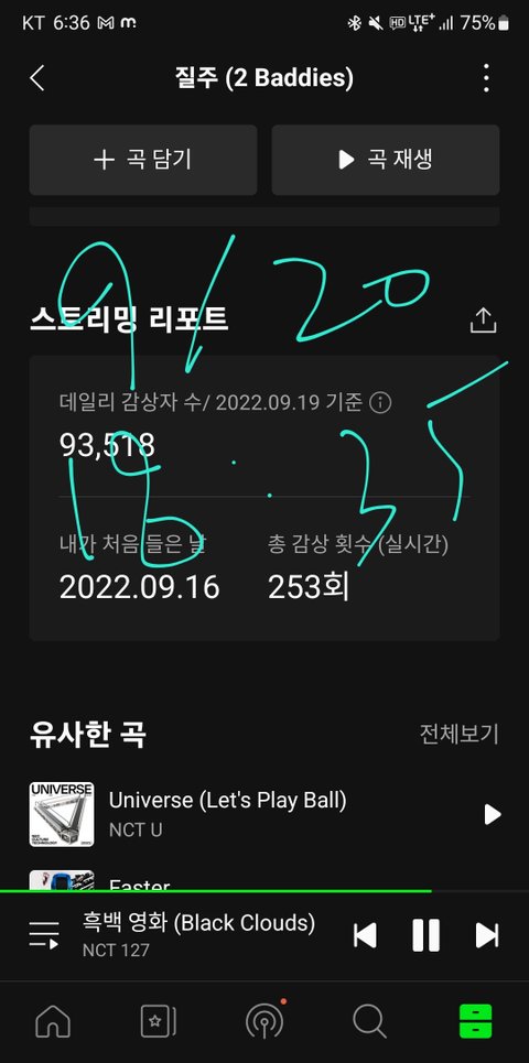 16일 1시부터 스밍한 멜론은 개많이끊겨서 아직 253회인데