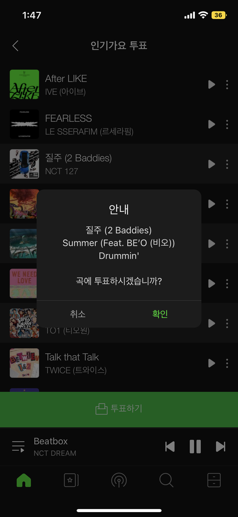 드프라 멜뮤때문에 스밍은 못했고 인가 투표는 했는데 이것도 욕먹나? 진심으로 127 질주 노래 좋다고 생각하고 127 ㅈㄴ멋있다고 생각함