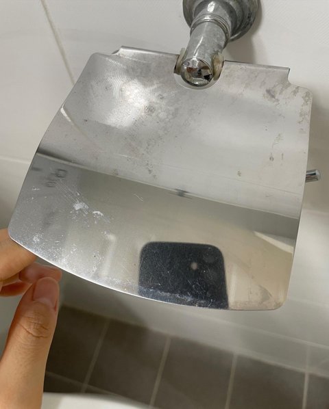 화장실은 세면대랑 바닥에 화장지를 붙여놨더라구요 약품 뿌려놨는데 지워질수도 있고 안 지워질수도 있다고 하며 화장지 덕지덕지 붙여놓은건 깜빡하고 말을 안했다네요