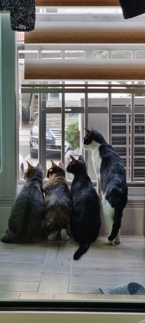 예전 집은 1층이라서 식구들 퇴근 소리가 들리거나 새소리 등이 들리면 저렇게 기다려요~ㅎ