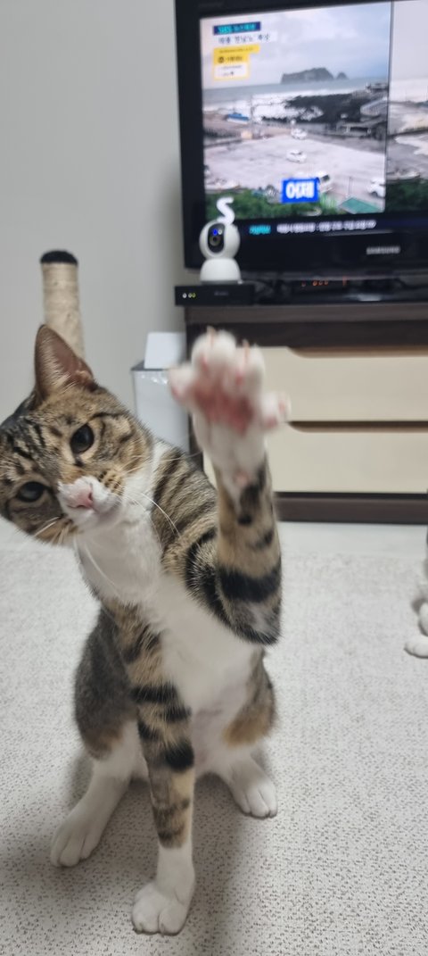 어릴 때부터 혼자놀기를 좋아하더니 커서도 그대로네요. 츄르에 환장하지만 덩치가 제일 작아요