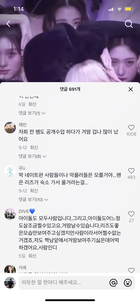 내가 리즈엿다면 이런 댓글 땜에 더 울고싶을듯