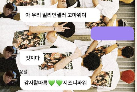 후기 보니까 밀리언 소식 듣고 태일이가 엄청 좋아했다고ㅠㅠㅠ 바로 버블 와서 고맙다고 하는거 진짜 너무 예쁘다