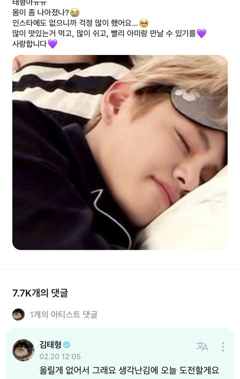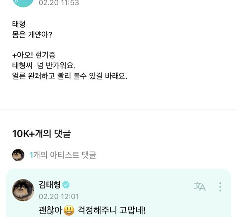 팬들이 걱정하니깐 위버스와서 괜찮다고해줌