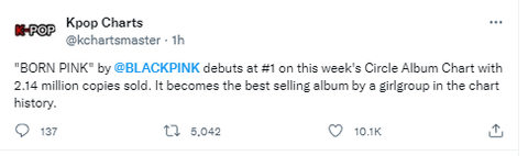 214만 장이 팔리며 이번 주 서클 앨범 차트 1위에 올랐네