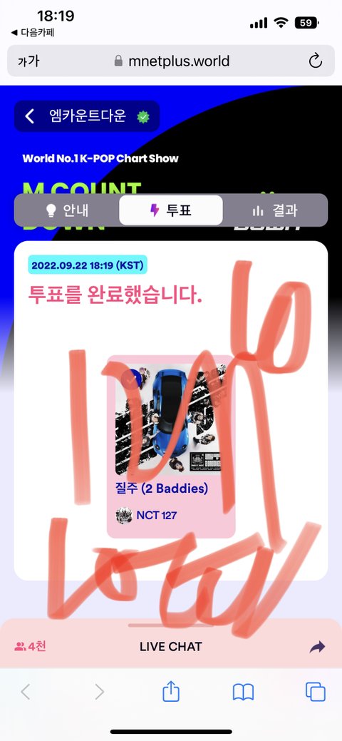 엠카 홈페이지 가서 실시간투표 하자 애들아