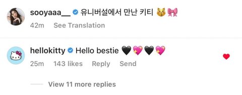 지수 최애가 헬로키틴데 찐헬로키티가 댓 달아줌..