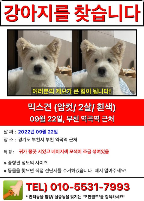 유기견이었던 아이입니다. 꼭 집으로 돌아올 수 있도록 공유 좀 부탁드립니다