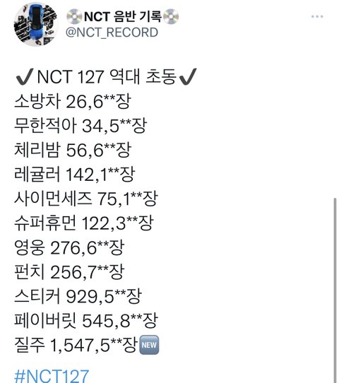 진심 레전드 커하 레전드 성장이다 127ㅠㅠㅠ미국 역대급 많이 팔렸는데 초동 하나도 안들어가고 심지어 일본도 역대급인데 일부만 초동반영됨 제대로 반영된건 한국 중국 밖에 없어ㅠㅠ ㄹㅈㄷ