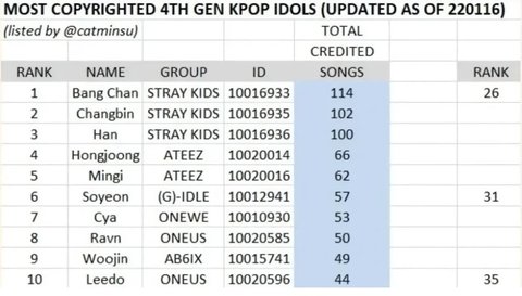 4세대 아이돌 저작권 등록 순위 TOP10 중 유일한 여돌이라는