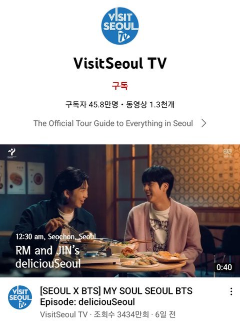 방탄 서울시 홍보대사 영상 알엠 진만 있네?